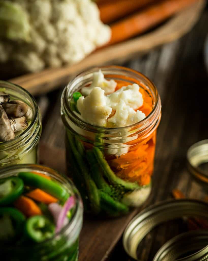 Jars of Quick Pickled Vegetables are found in taco restaurants all over Mexico. Be creative and add other herbs such as thyme or oregano. You can also add more olive oil if you like. I like to add non-spicy vegetables sugar as carrots and mushrooms to the spicy jalapeños. You can always add one slice of jalapeno to your cauliflower or green beans for some added kick. If you don’t have fresh green jalapeños for spicy flavor, simply add a dried red chile to your non-spicy vegetables.