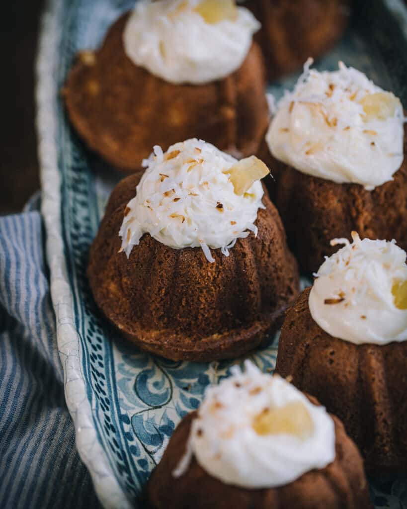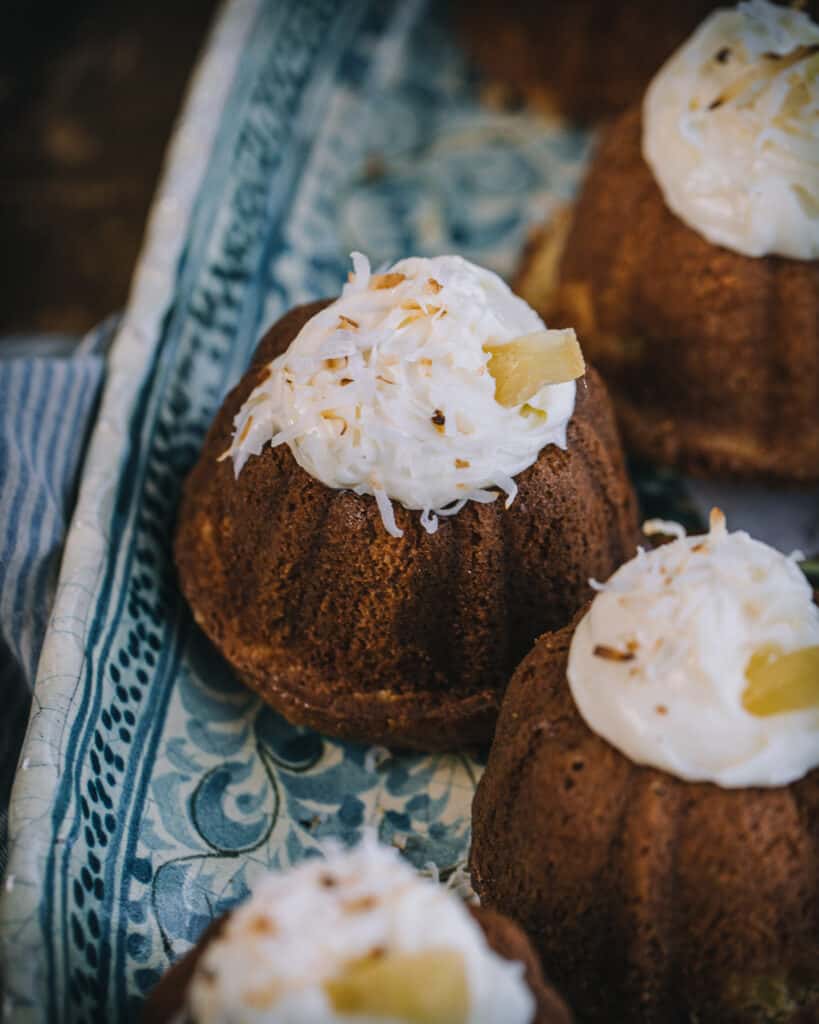 I decided to use mini-Bundt cake molds for my Piña Colada Cake. Really these cakes are too large for single servings, so you would have to share them with another guest. Another option is to make these cakes as gifts for your guests. They are larger than a cupcake but not so large that there will be leftovers.